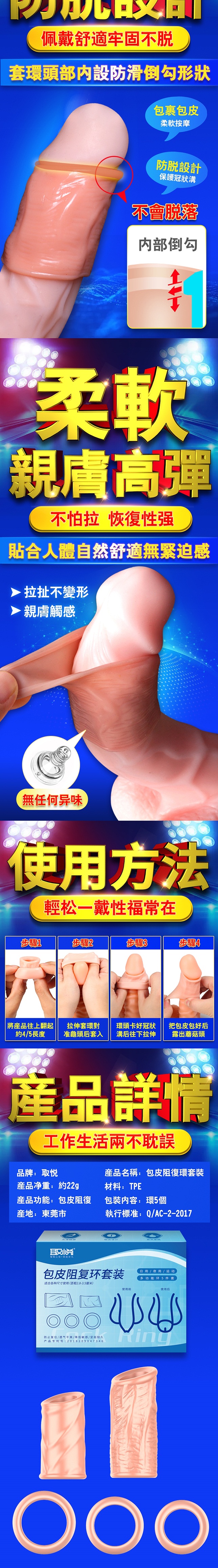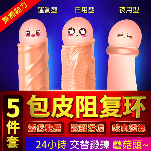 | 滿1000元贈品 取悅 ‧ Cock Ring 包皮阻復5件套裝組 - 一般型﹝運動+日用+夜用﹞