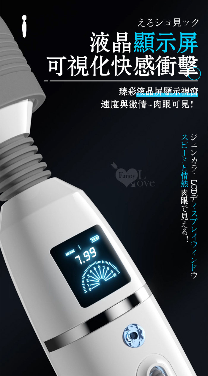| ROSELEX 潮吹王AV棒 ‧ 女優を絕叫 液晶螢幕顯示9頻X8級速大頭強震按摩棒-灰白﹝智能加溫款﹞