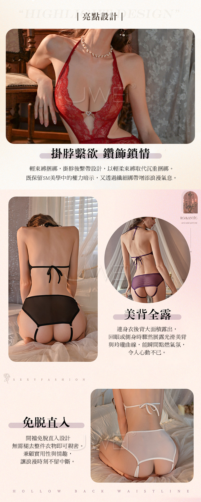 ►您現在的位置:首頁>繁花似錦.深V愛心鑽飾露胸掛脖繫帶美背蕾絲開襠連體衣【紫色】