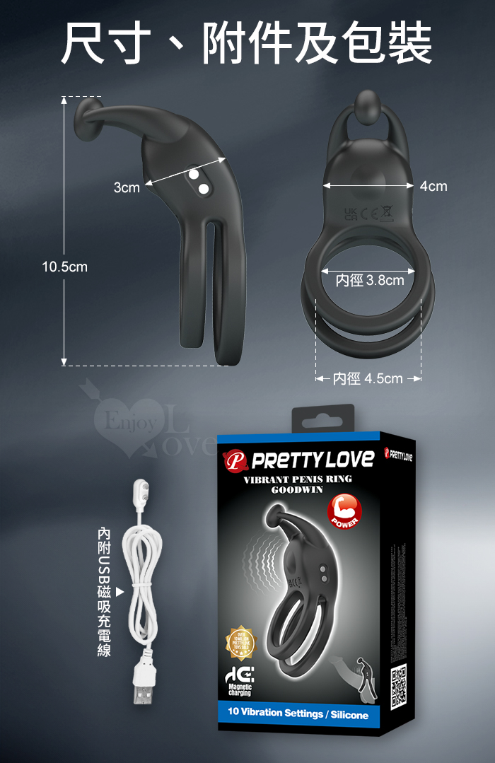 派蒂菈 ‧ GOODWIN 古德溫 疾速撩震外陰鎖精雙蛋蛋套環﹝男女同樂/10段強震/矽膠舒適佩戴/磁吸充電﹞