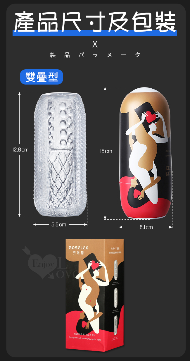 | ROSELEX 勞樂斯‧ 快樂一手掌握 觸點層次起伏Q彈水晶膠體自慰套﹝雙疊型﹞