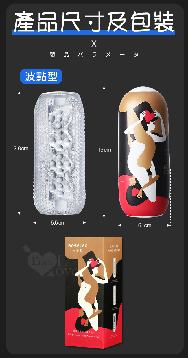 | ROSELEX 勞樂斯‧ 快樂一手掌握 凸粒包覆刺激Q彈水晶膠體自慰套﹝波點型﹞