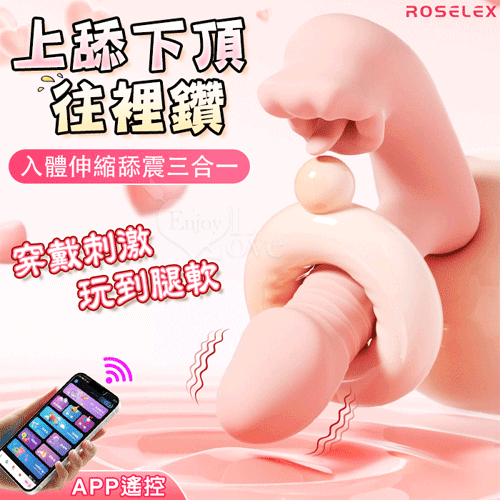 | ROSELEX 上舔下頂 入體伸縮舔震三合一 10頻雙馬達貼合穿戴按摩器 - 可手機APP遙控﹝具兩種操控模式﹞粉