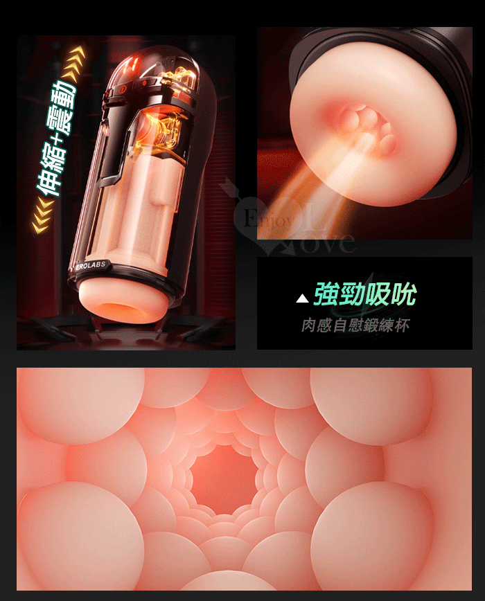 EROLABS 擼霸全配版 ‧ 智能伸縮/吸吮/震動/語音 緊實肉感自慰鍛練杯﹝液晶數碼9頻伸縮X9頻吸吮X9強震+4國淫聲+耳機﹞白色