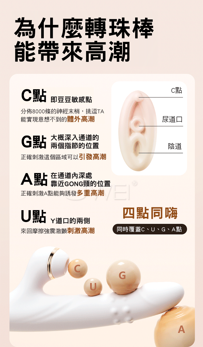 轉珠刺激伸縮攪動,12顆 雙排滾珠,360度旋轉搖擺