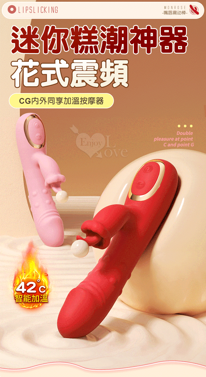 | ROSELEX 迷你糕潮神器 雙10頻雙激震舌擊點 CG內外同享加溫按摩器 - 紅