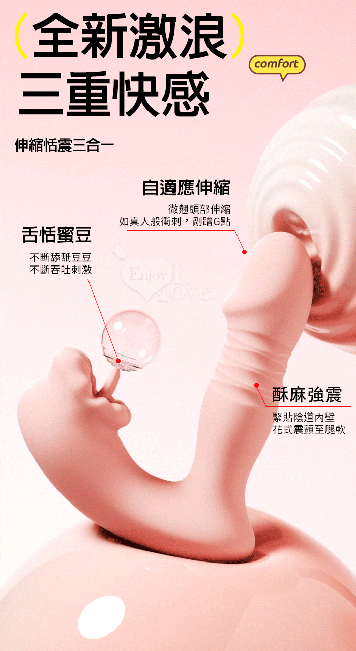 ROSELEX 上舔下頂 入體伸縮舔震三合一 10頻雙馬達貼合穿戴按摩器 - 可手機APP遙控﹝具兩種操控模式﹞紅