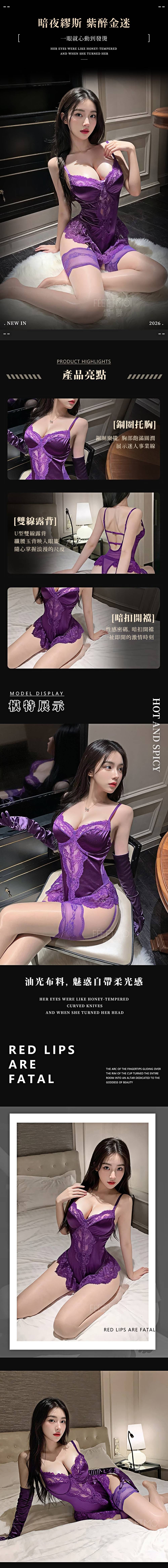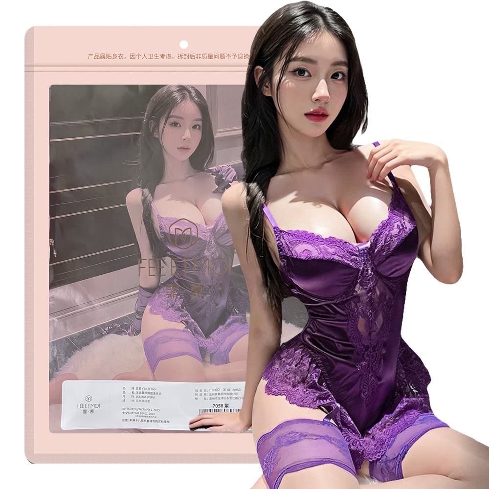 | 法式蕾絲鋼圈開襠連身衣7056